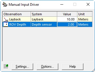 In case you are using Manual Input drivers for your Layback system or Depth sensor you need to enter the correct values and make sure that the observation is updating.