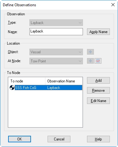 (For a small fish, you can select the CoG of the fish. For bigger fish, you can define a node on the fish which represents the actual connection point.) - Enter an Observation Name (e.g. Layback) and press OK.