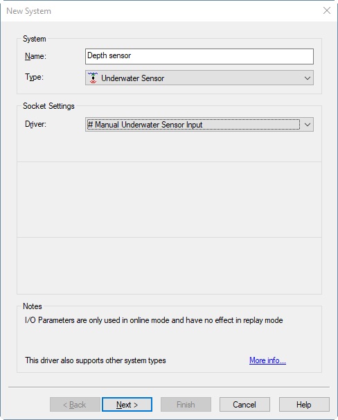 - Select # Manual Underwater Sensor Input as Driver if the depth will be entered Online manually.