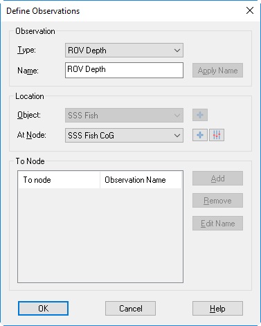 - Select as At Node the CoG of your Tow Fish or the node with the exact position of the depth sensor on the Tow Fish.