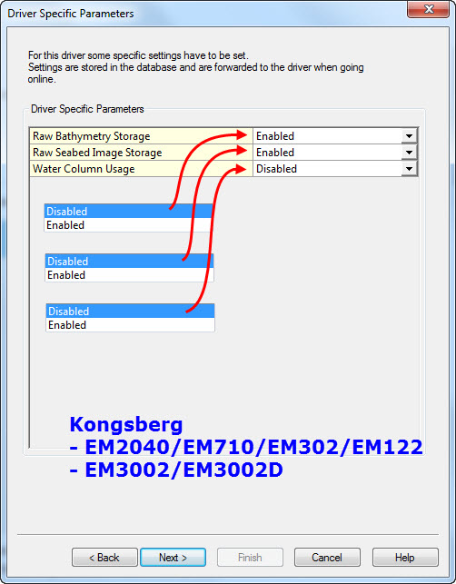 | Water Column Usage | Disabled/Enabled | When Enable the Water column data is decoded by the driver. The STORAGE of the water column is activated with a setting in the Controller Session Setup - Database page. |