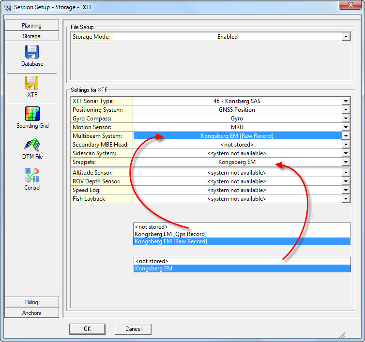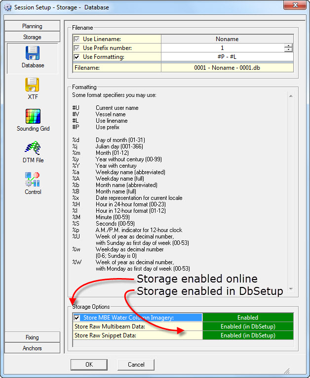 | Raw Seabed Image Storage** | Disabled/Enabled | When Enabled the Seabed Image (Y) is stored in the database for usage in Fledermaus. |