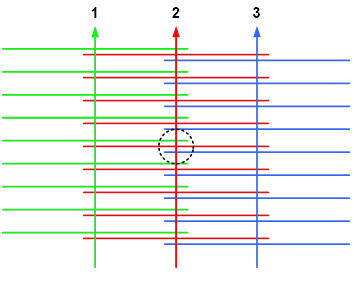 Run 3 lines as indicated below with the 2nd line crossing a distinct object: