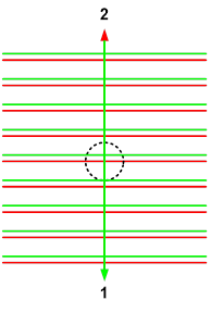 Select lines 1 and 2, make a calibration corridor along the center beam of line 2.