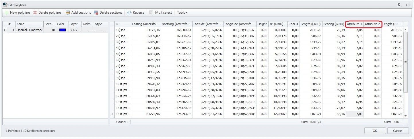 Note that using the Survey Manager you may define two additional fields next to the co-ordinate values for a POINT, LINE or ROUTE section: Attribute1 and Attribute2.