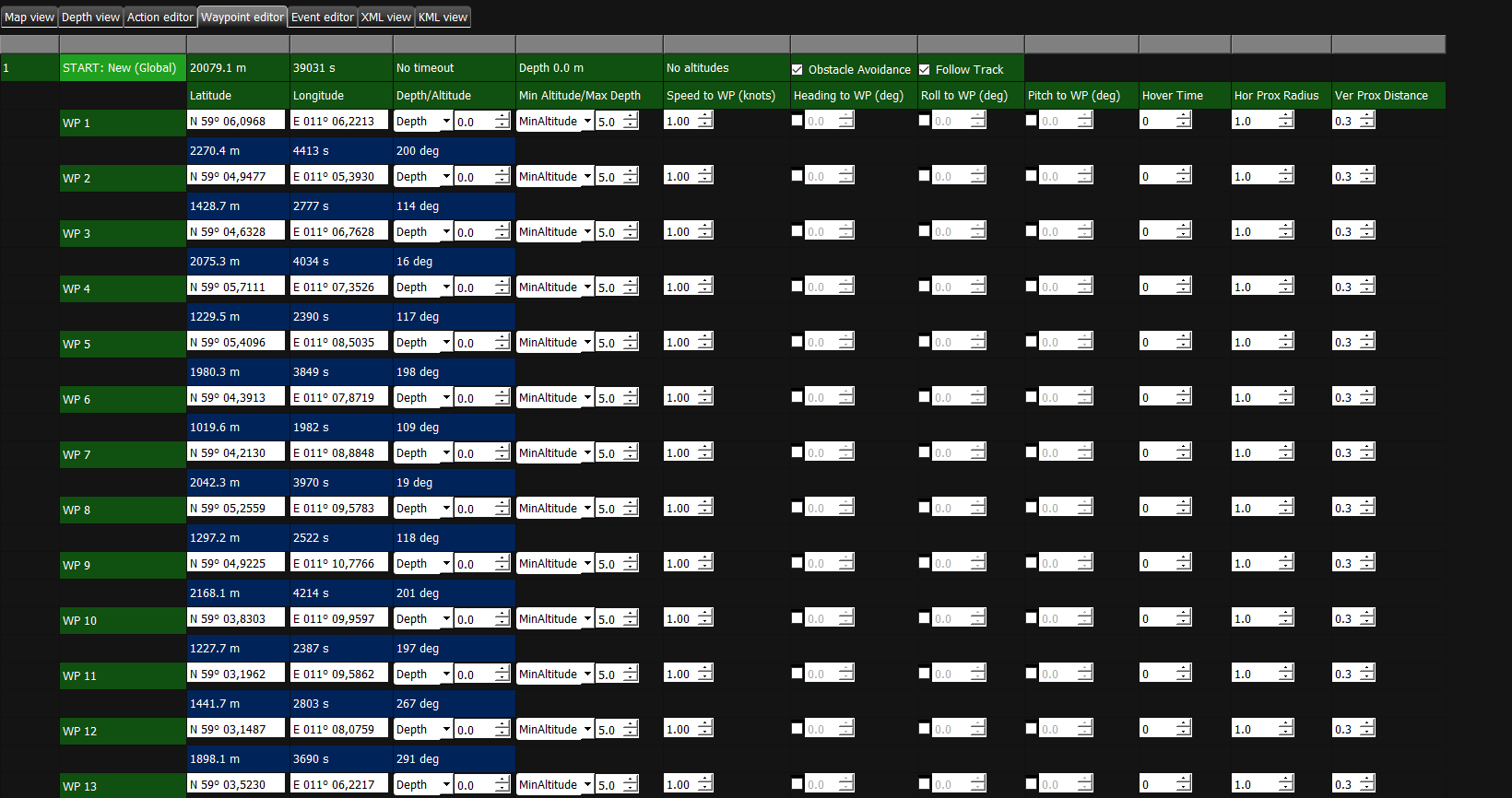 Additional tasks like depth, altitude or roll can be added to the mission in the Waypoint editor.