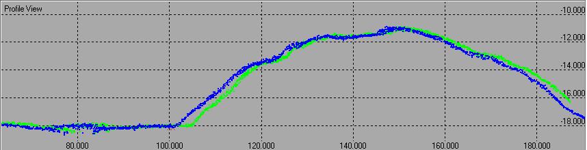 The pitch calibration can be best performed on a slope. The essence of the pitch calibration is shown in the figure below: when there is a pitch error the two profiles will not match.