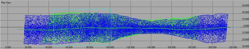 Define your scrollbox over the slope, parallel to the sailed line on the overlap of the two lines, between the transducer tracks.