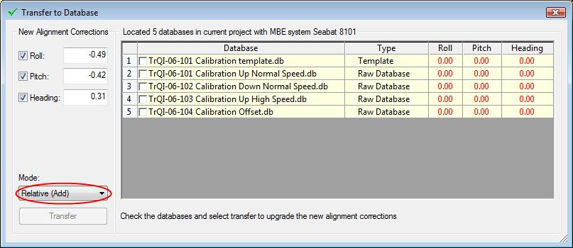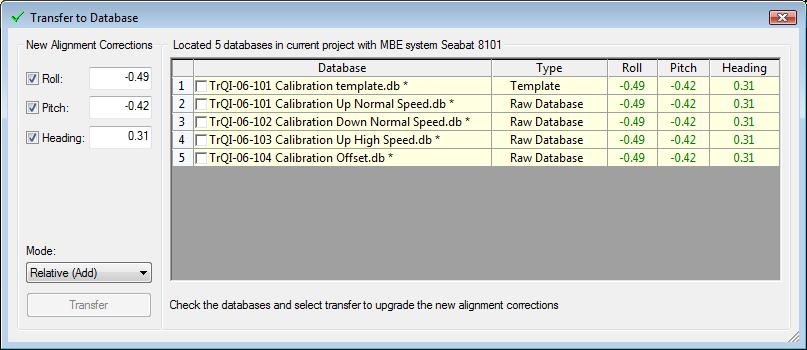 Select the databases that the newly determined corrections need to be transferred to and press the Transfer button.