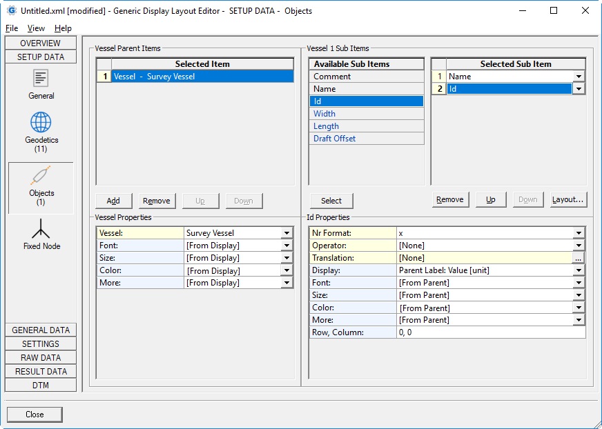 | Id | Unique identifier, automatically set by QINSy when adding an object in the Database Setup. | integer | ||