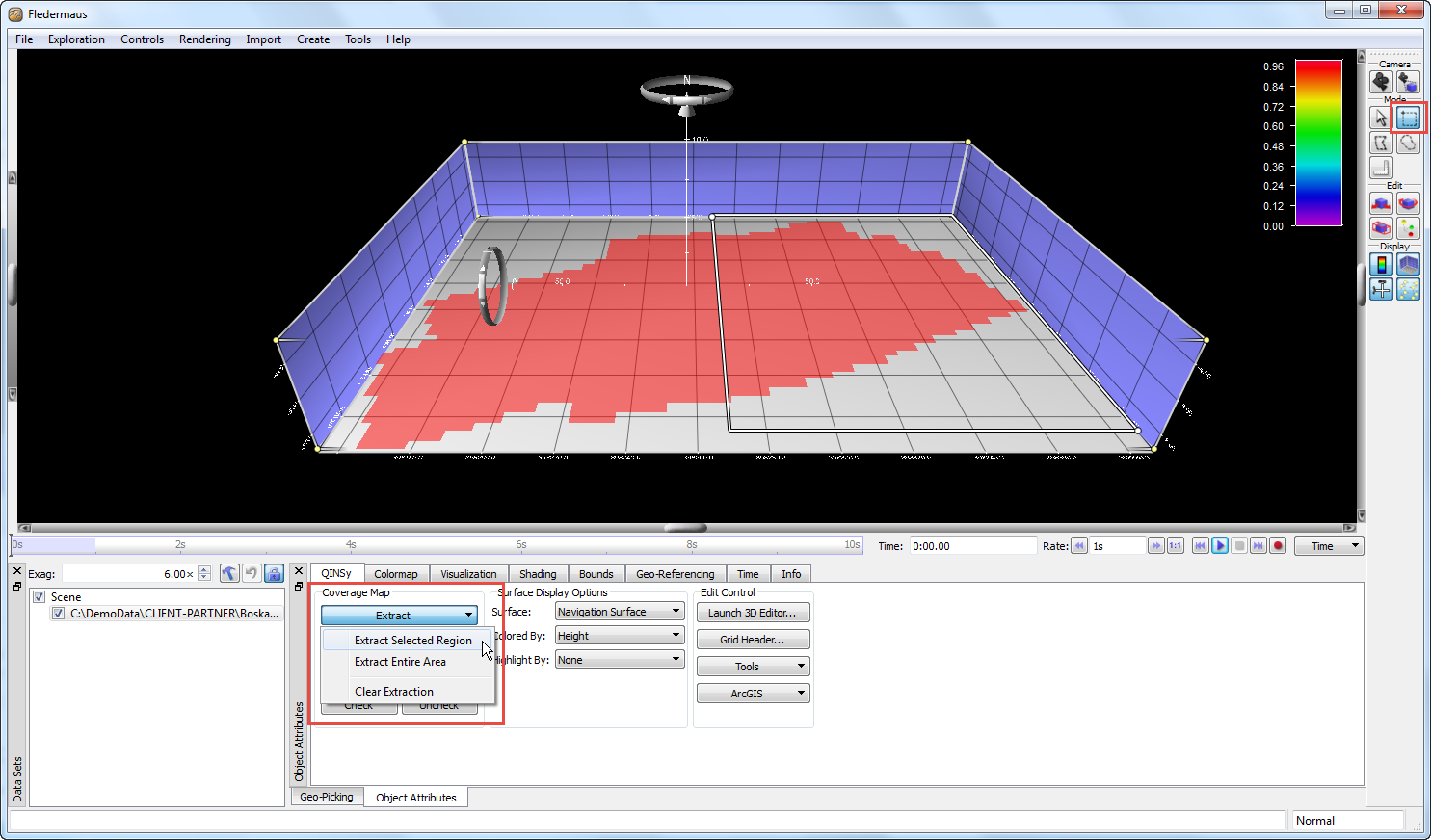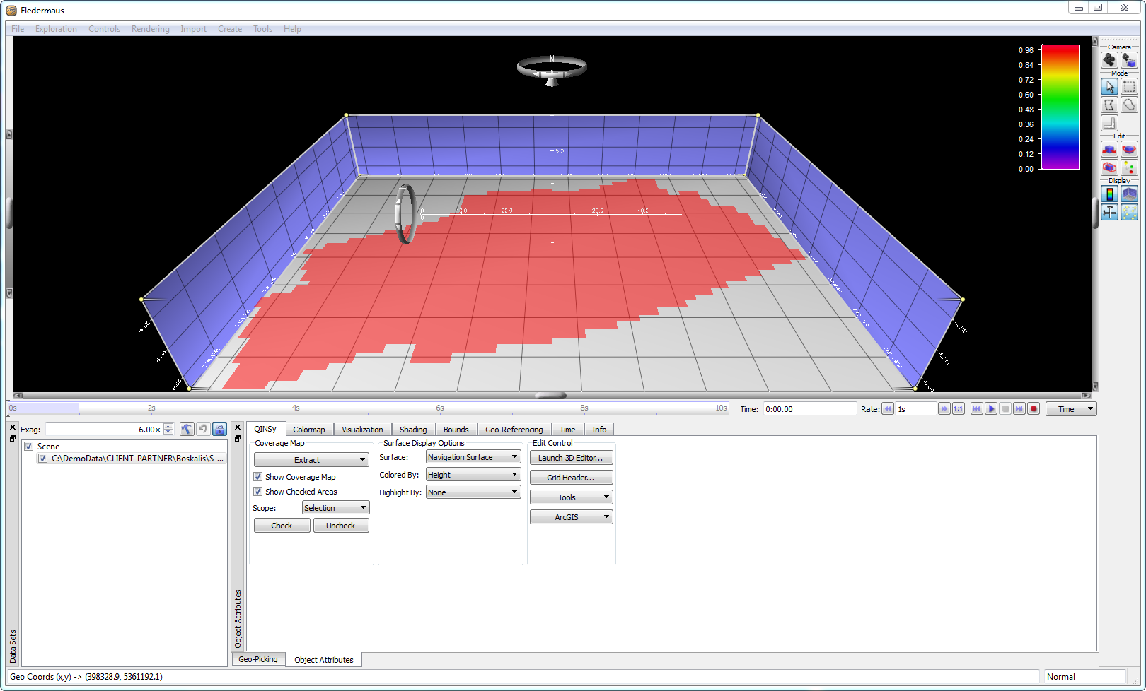 Fledermaus will load the Dynamic Surface from the project and display the coverage map.