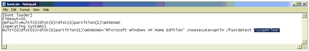 multi(0)disk(0)rdisk(0)partition(1)\WINDOWS="Microsoft Windows XP Professional" /fastdetect /usepmtimer