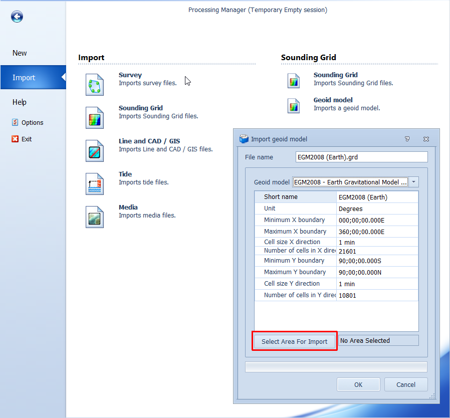 - PM.NET - Sounding Grid - Import - Geoid - Not possible to 'Pick area'