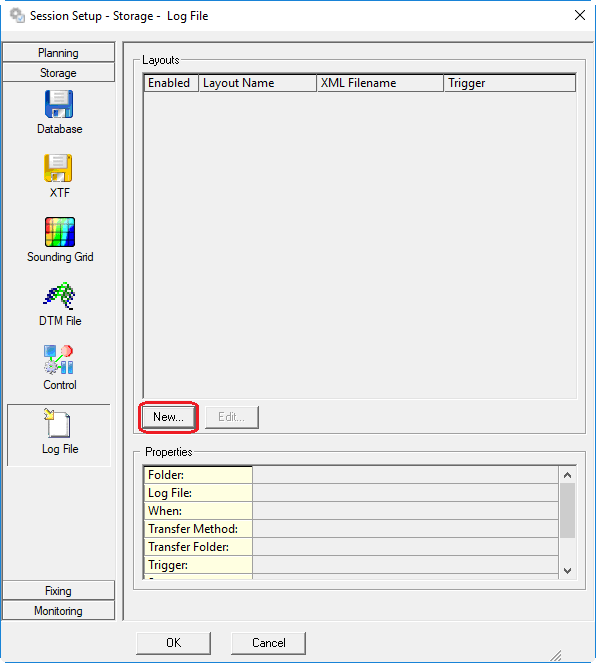 Online - Session Setup - Storage - Logfile - added "New..."button
