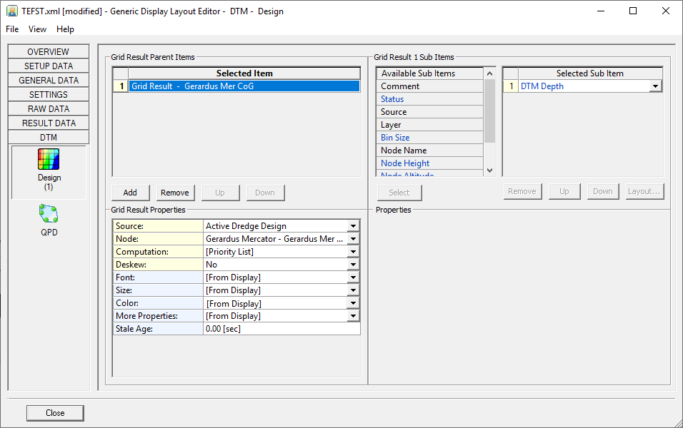 It is now possible to output the height of a dredge design at a node position.
