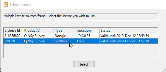 The dongle selection dialog is now similar to the dialog in other QPS products: