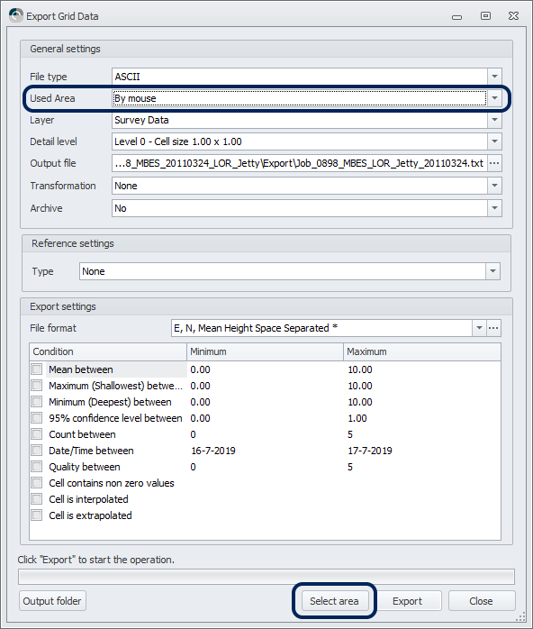 Sounding Grid - Export - ASCII - Added area selection to GUI