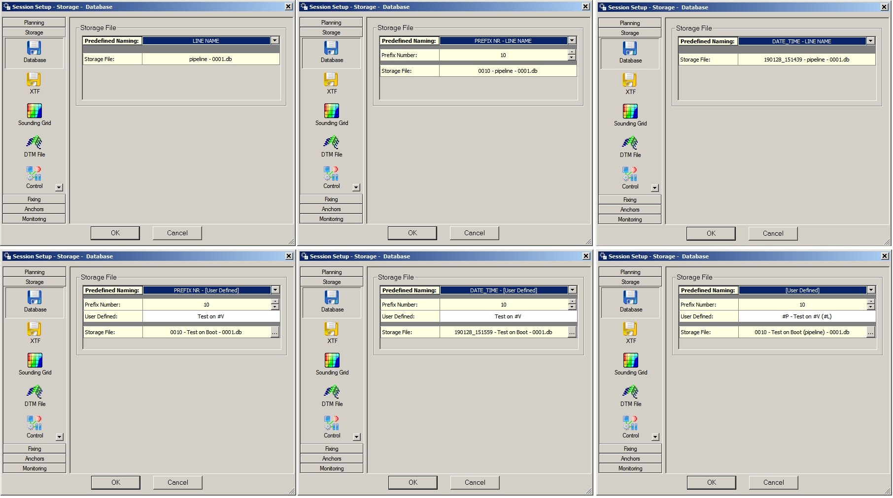 Session Setup - Storage - Database - Storage file naming