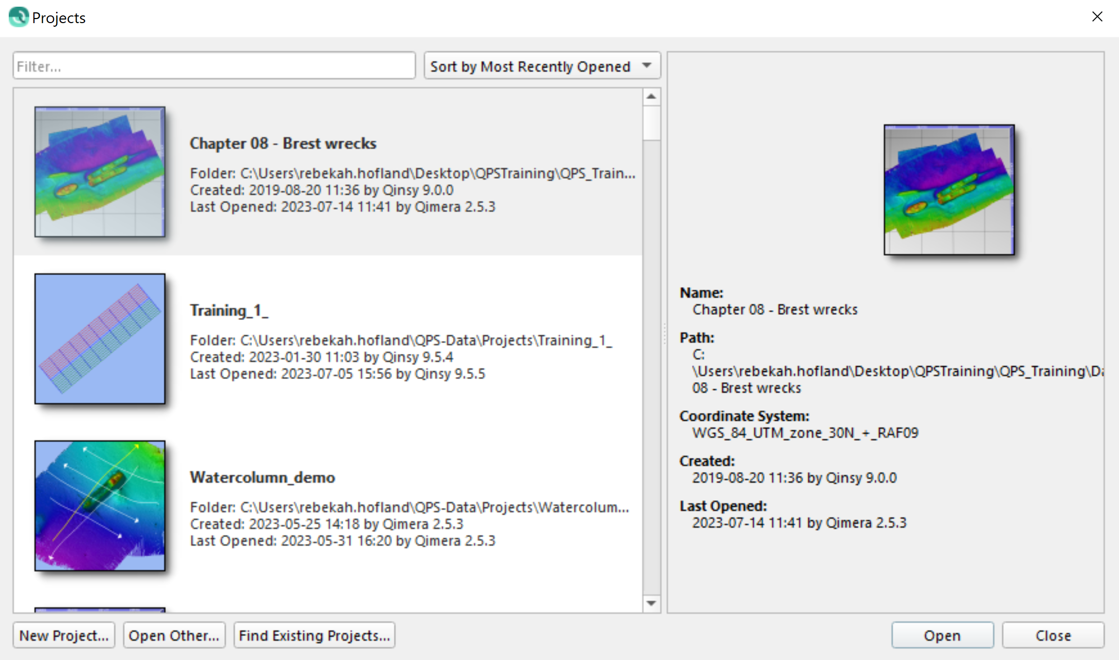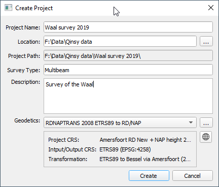 The project dialog has had a refresh and is now common between Qinsy and Qimera, with functionality merged from the previously used dialogs in both applications.