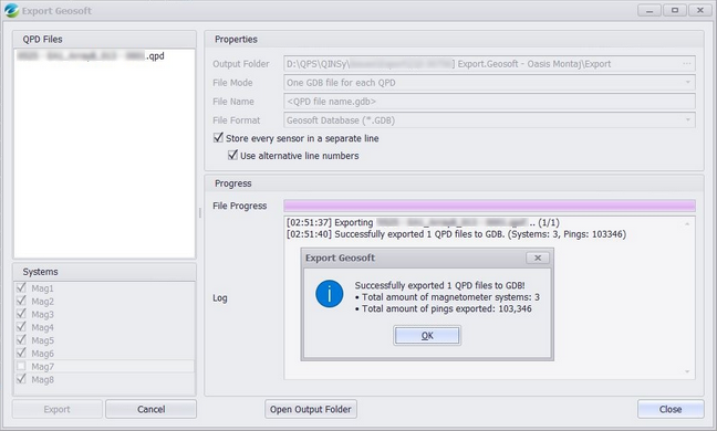 The magnetometer data that is stored in a QPD can be directly exported to a Geosoft database. This removes an error prone step in the processing of magnetometer data.