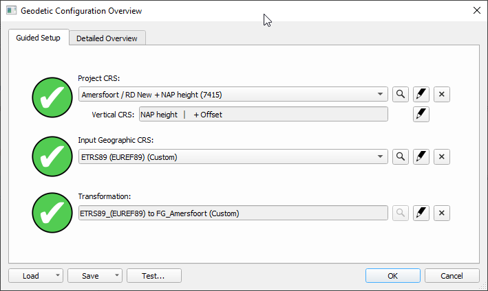Note that with the new user interface the geodetic settings will be part of the Project Settings. This replaces the method whereby the settings from the active template database were used.