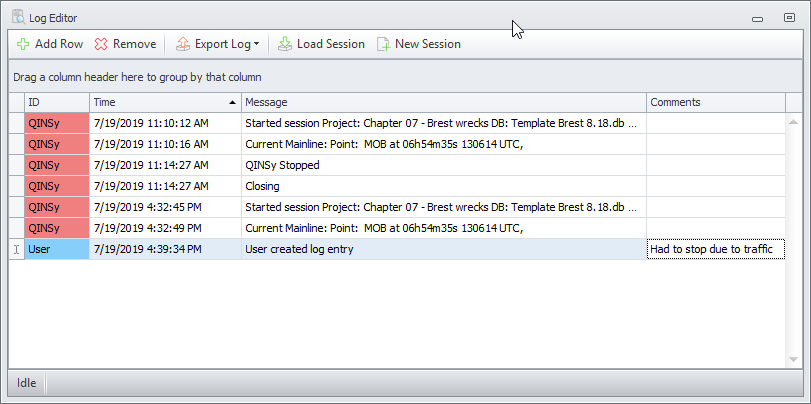 It offers the possibility to add lines to the survey log in which user comments can be placed.