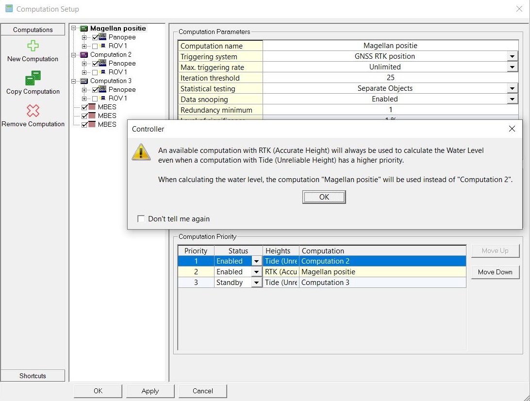 When using an accurate height like RTK in your computations, Qinsy can calculate a water level using the vessel draft, called RTK-Tide.