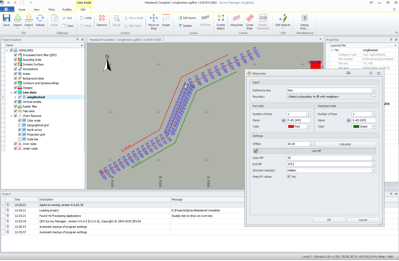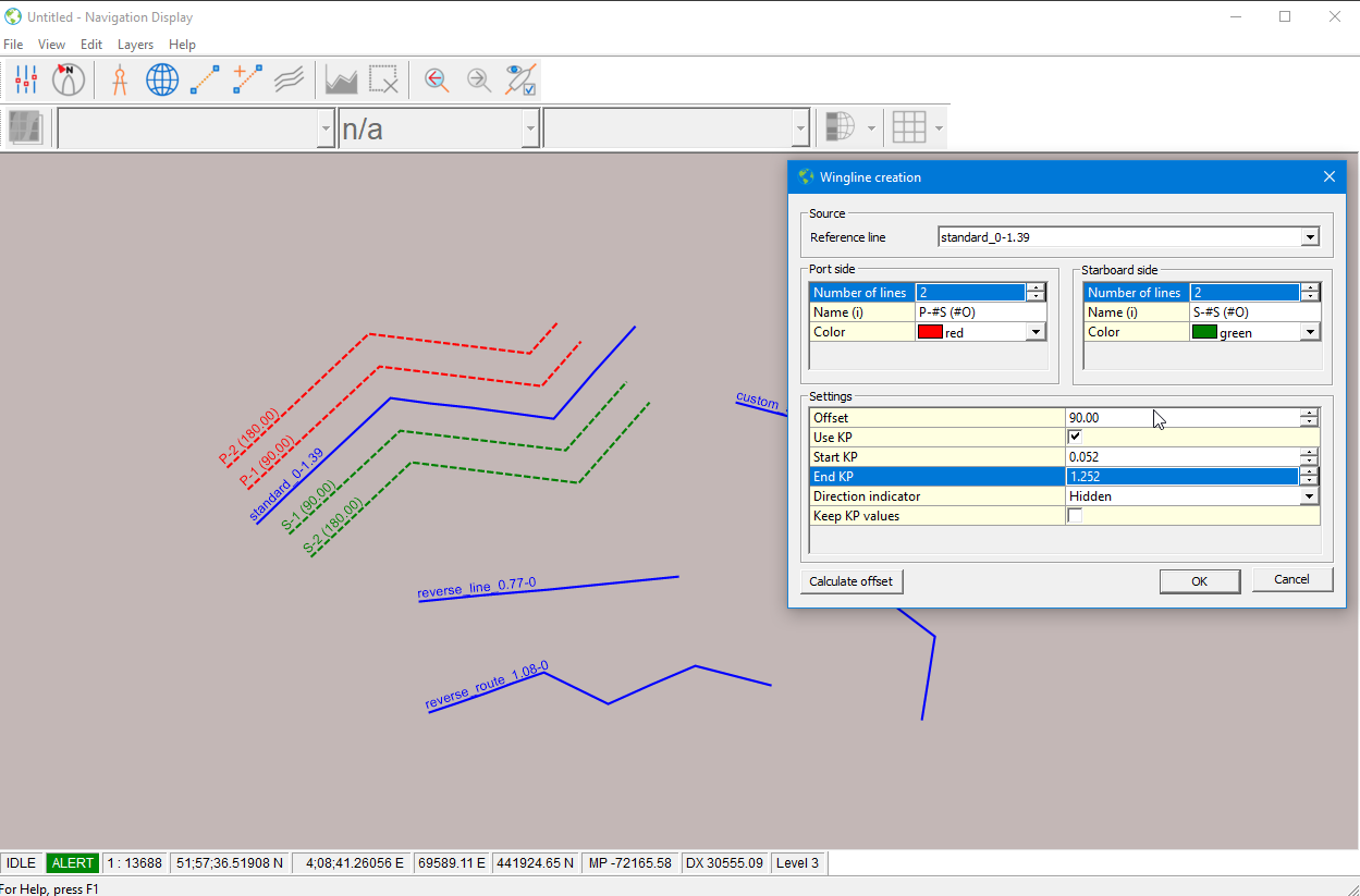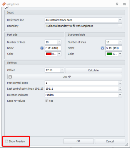 It is now possible to create Wing Lines between a specified Start and End KP in both the Survey Manager and in the Navigation Display, Online or in Replay: