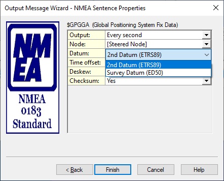 The user interface has been updated to show the actual available datums instead of the hard-coded labels "WGS'84" and "Survey Datum"