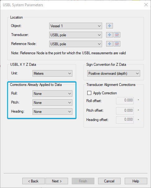 This has now also been done for the settings shown below of the following driver: Simrad HiPAP Raw (NMEA PSIMSSR Format) (UTC)