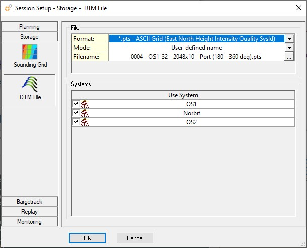 Online - Session setup - Storage - DTM File - include System ID in pts - ASCII Grid (e, n, h, i, q) format