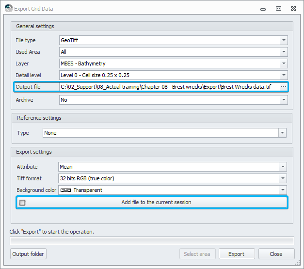Survey Manager - Sounding Grid - Export - GeoTiff - Made Export folder default location
