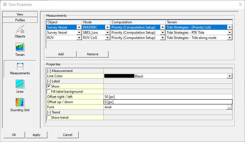 In addition to that, it will also be possible to do Measurements between object (Vessel, ROV, etc.) nodes and the Strategies: