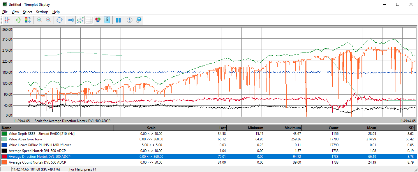 The ADCP results can now be shown in the Time Plot Display: