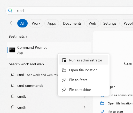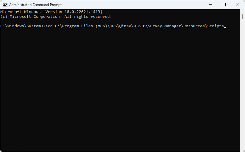 C:\Program Files (x86)\QPS\Qinsy\{Qinsy version}I the start menu, type “cmd”, right click on it and select ‘Run as administrator’
