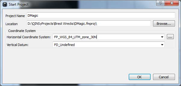 Give the project a name, set the Location, and choose the Horizontal Coordinate System. Click OK.