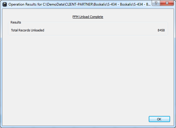 When the Unload completes, you will see the Unload Complete screen with an indication of how many records were changed in the QPD files. Click OK