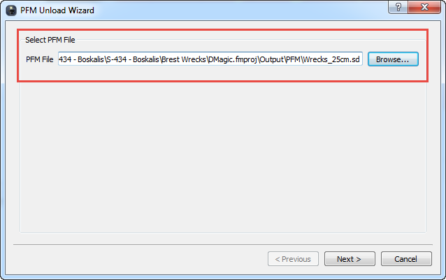The Output PFM Geospatial Coordinate System projection will be automatically set to that of your project. No changes should be made here.