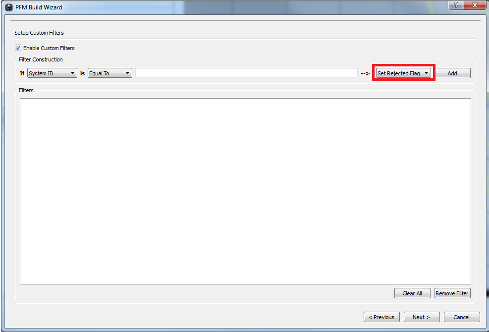 Create and apply additional filters if desired. Please note that only the Rejected flag will propagate back to the QPDs when the PFM is unloaded after processing;