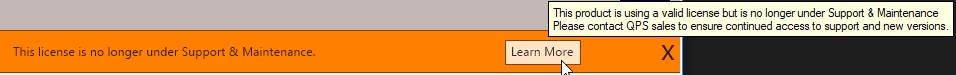 A banner will show in the Qinsy Navigation Display when Support and Maintenance is going to expire within 30 days.