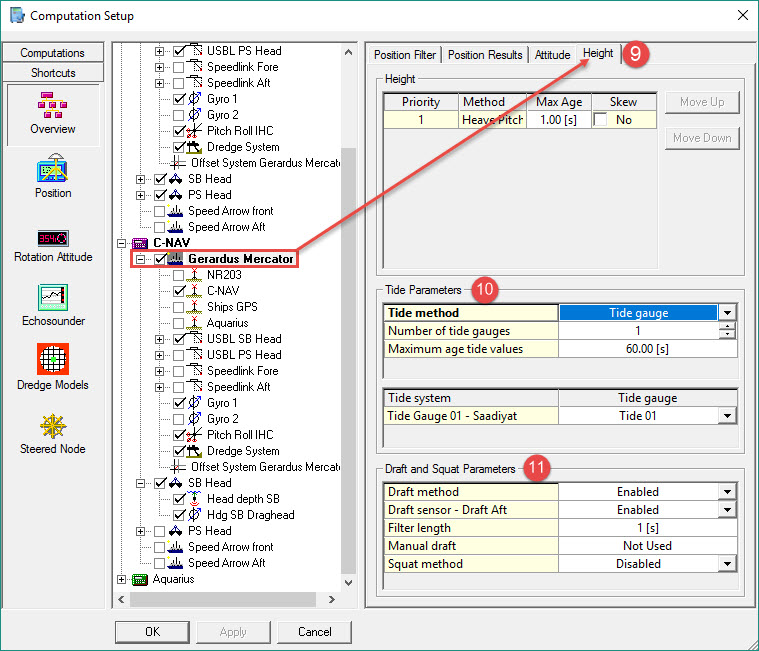 These settings are the same for all computations. In case multiple heave observations are available, a priority must be set.