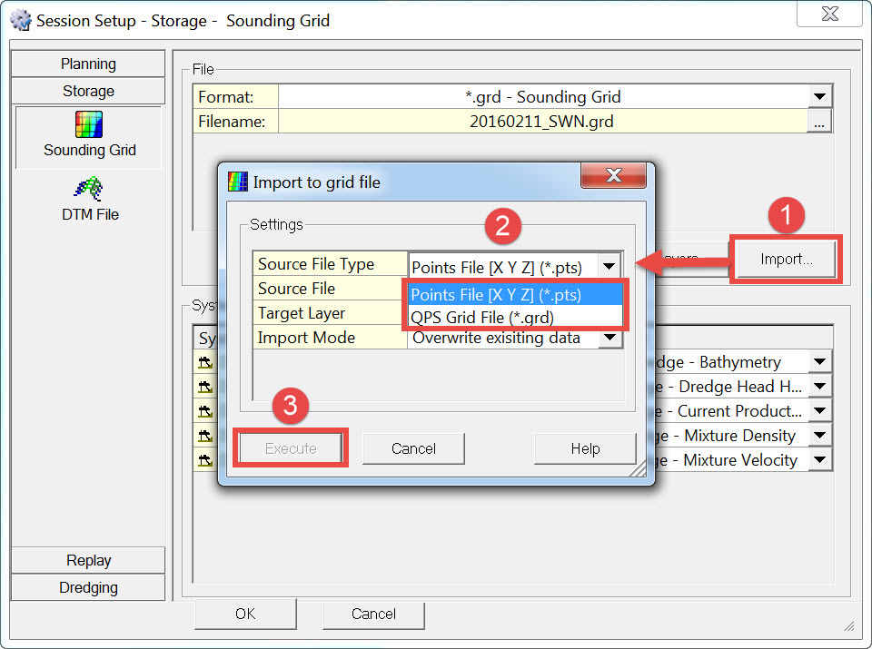 1. Controller - Settings - Session Setup - Storage - Sounding Grid (*.pts/*.grd)