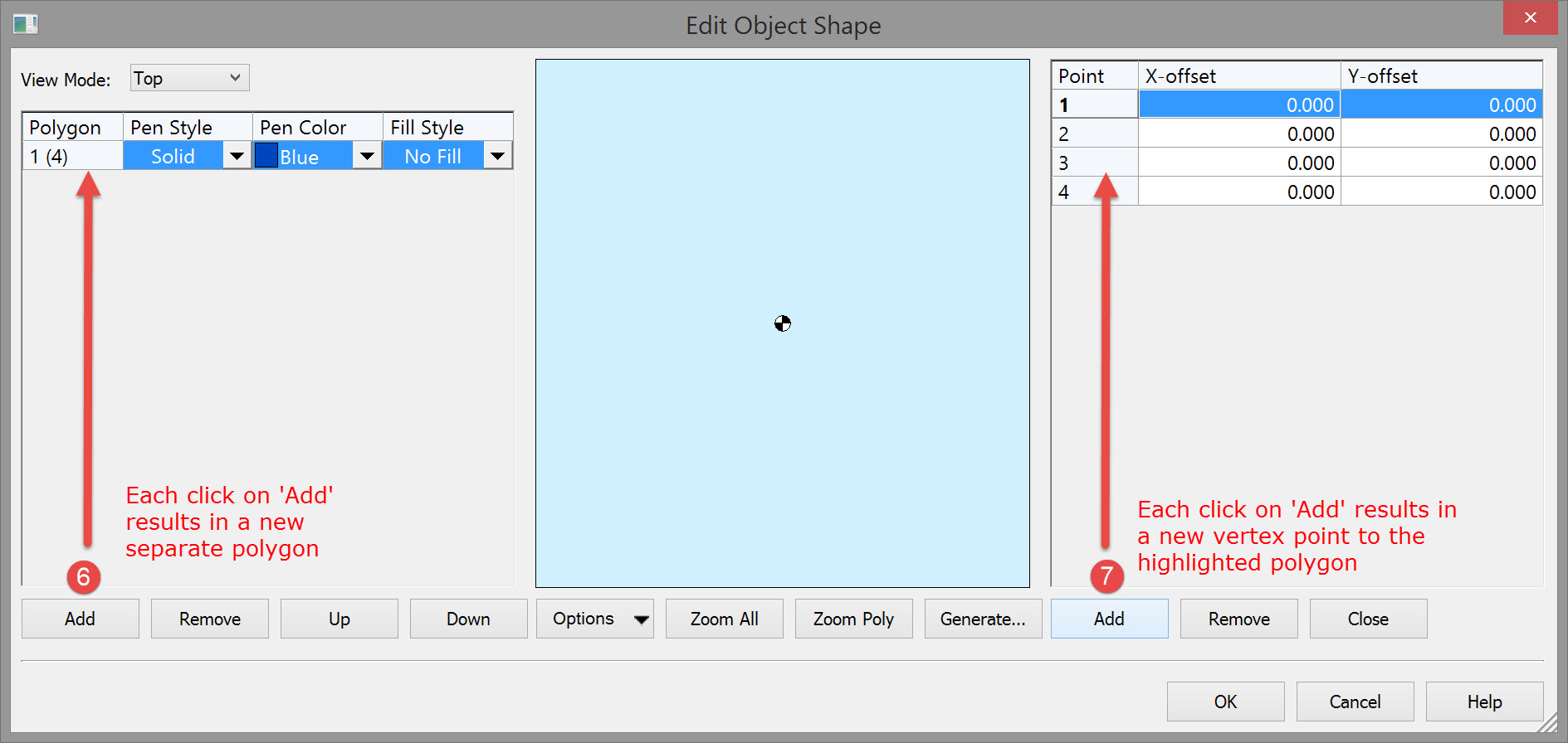 The following dialog shows a complete top view.