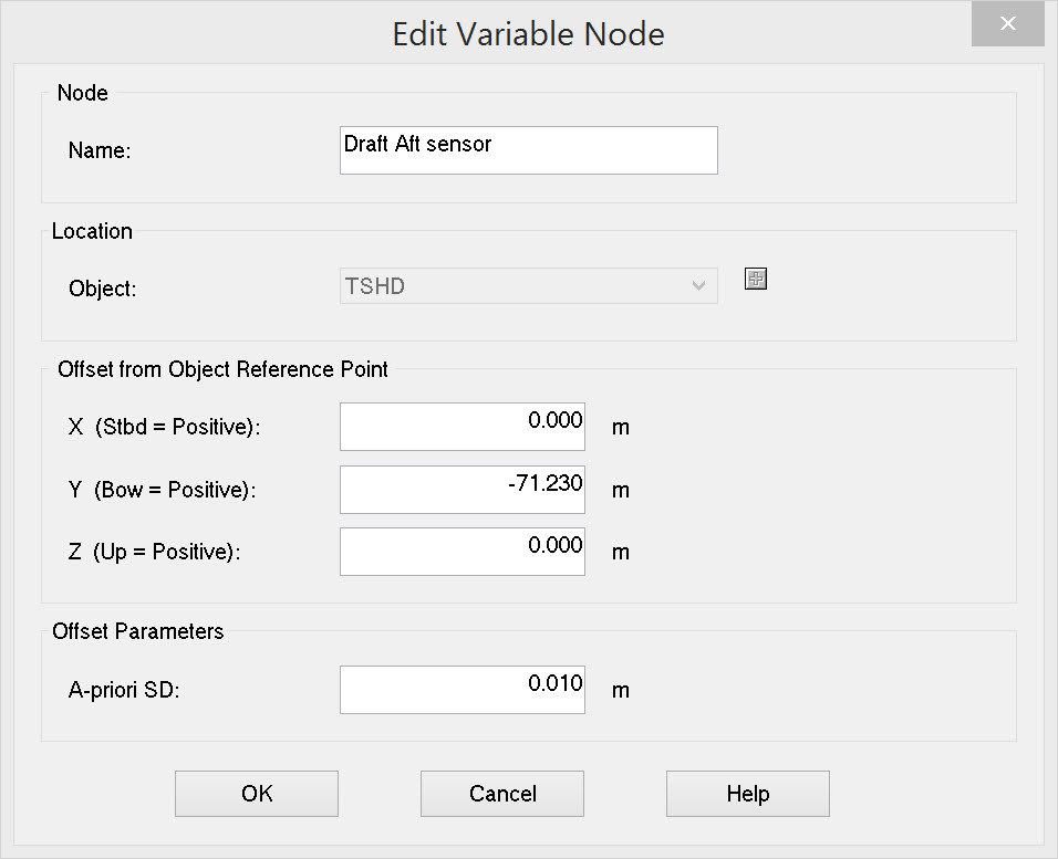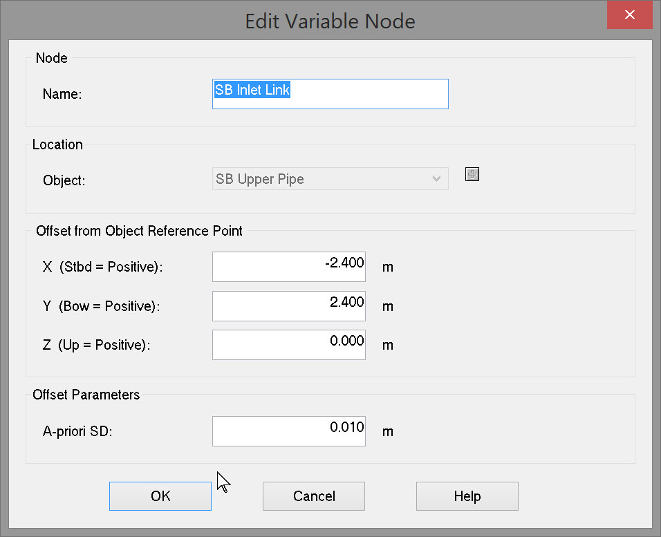 Enter a node name, the object on which the node is located and the offset values FROM the object reference point TO the new node location.