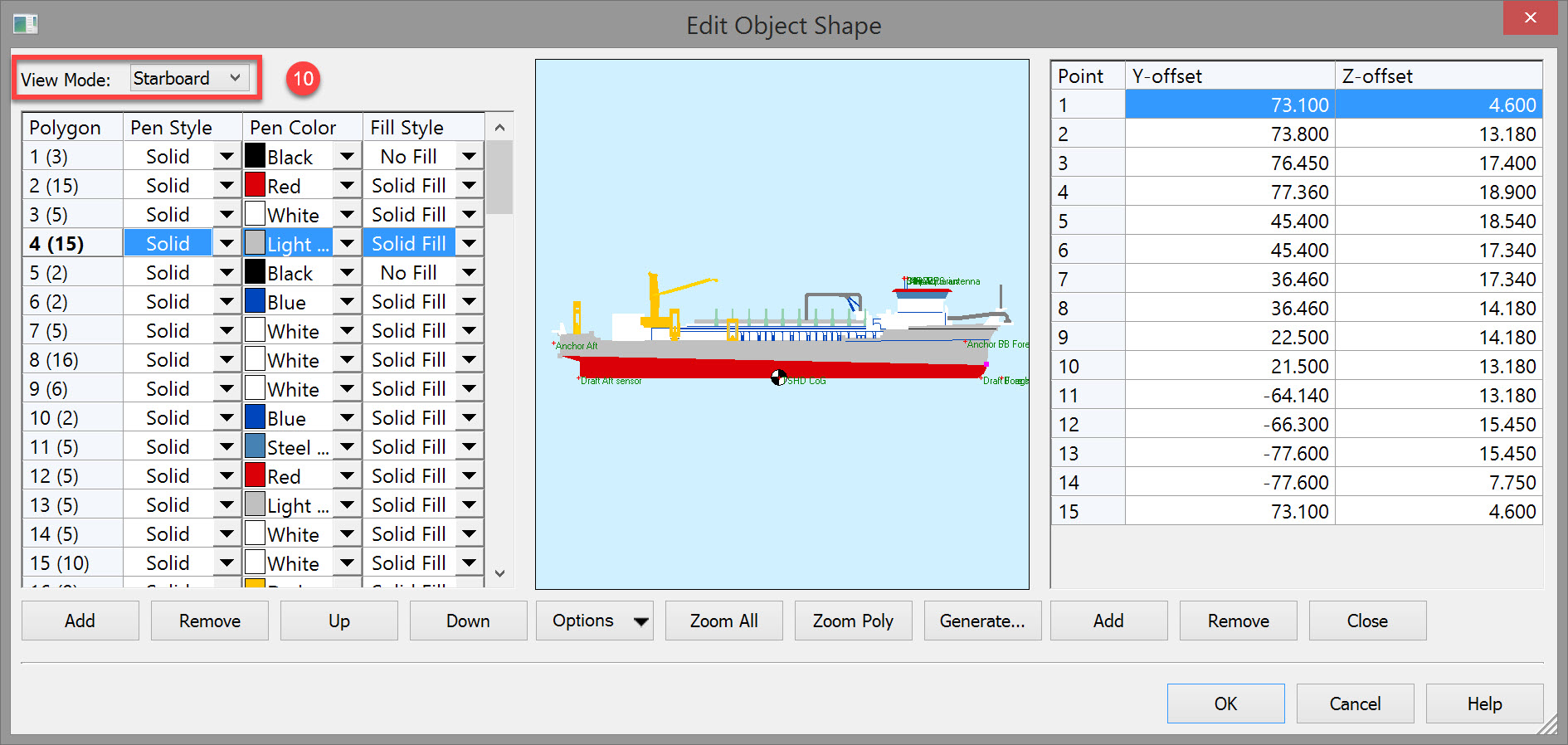- 1000 vertices are available, shared between top, starboard and aft views.