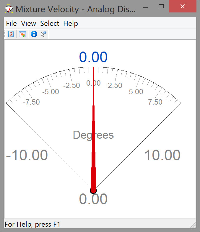 The Analog Display is used to display an observation in a meter or a gauge format; for example, to display the object speed along and across, or to display dredging production parameters such as mixture velocity, density, and volume.
