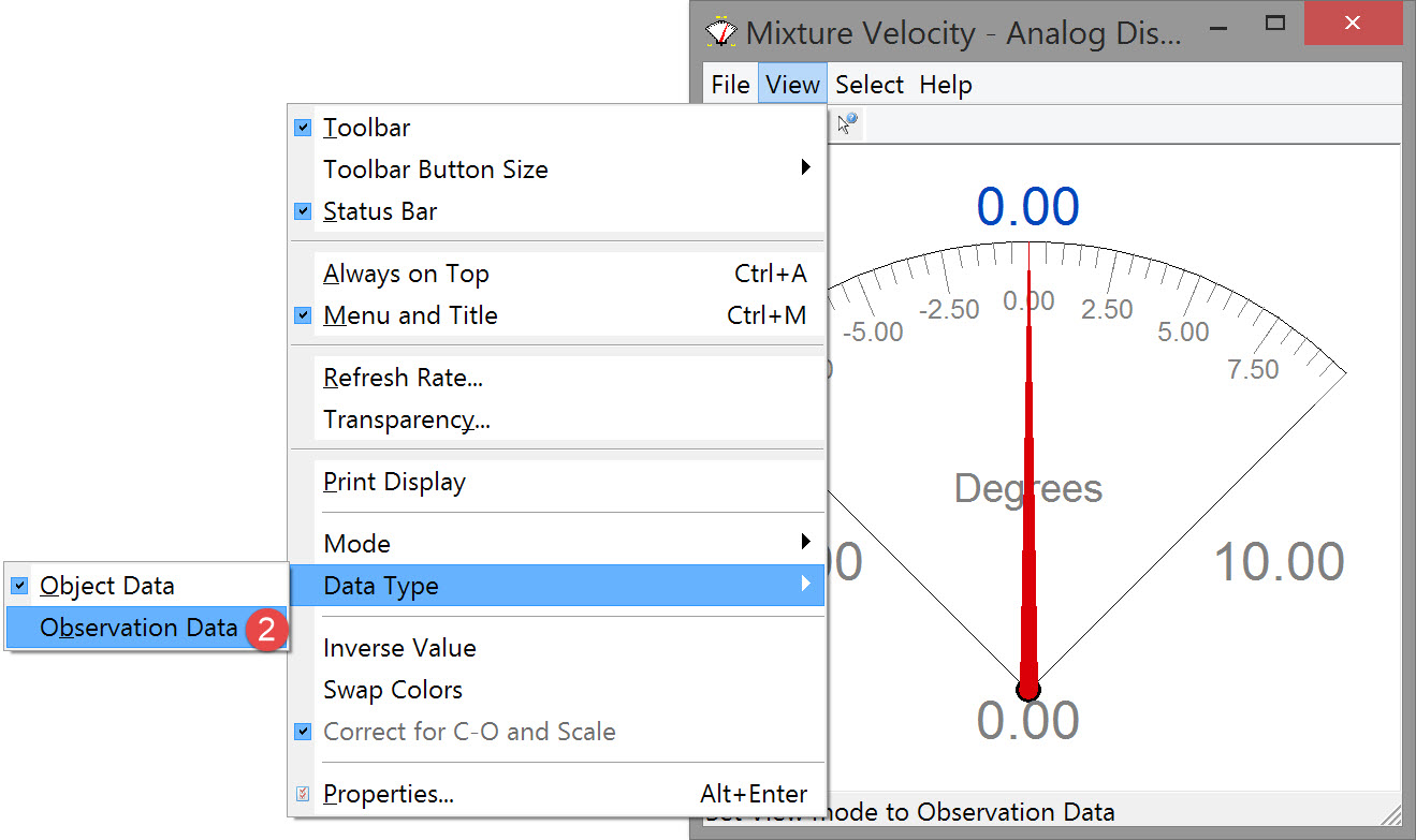 When “Observation Data” is selected, there is an option in the View menu to correct for C-Os and scale.