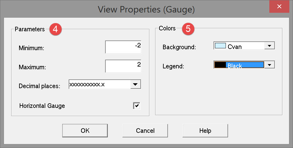 | Horizontal Gauge | When activated the gauge is displayed horizontally, when deactivated the gauge is displayed vertically. |
