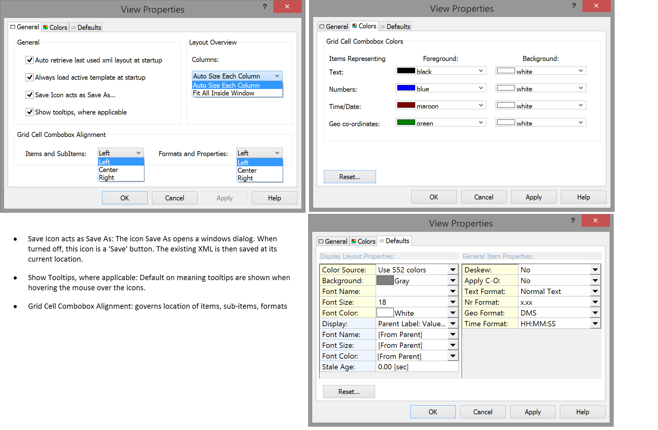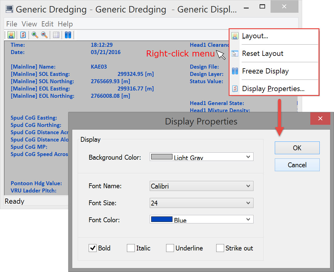 Next it might be useful to highlight certain items with larger text and/or different colors. Using the right click menu select Display Properties.Modify one or more of the parameter values and notice that the changes apply to all items in the dialog.