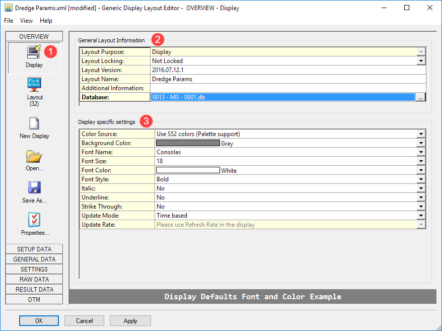 Display The Display Layout XML file will be saved in subfolder \XML\Display of the current Project's Settings folder, or in the current Support Settings folder